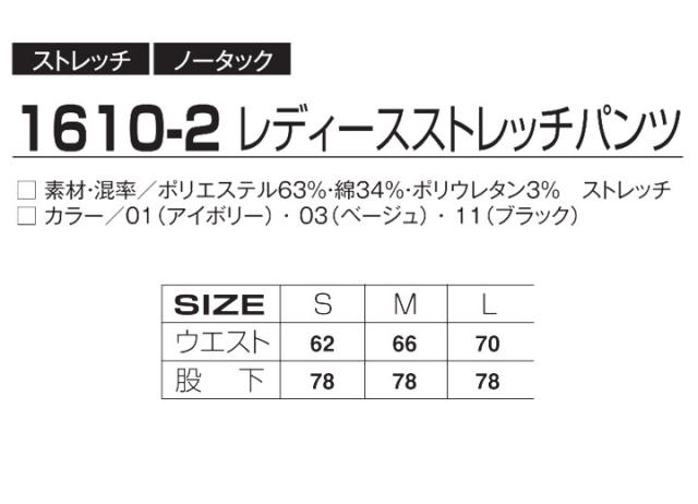 レディースパンツ 作業服 アタックベース 16102 ストレッチ レディース ノータック ズボン 作業服 作業着 ユニフォーム