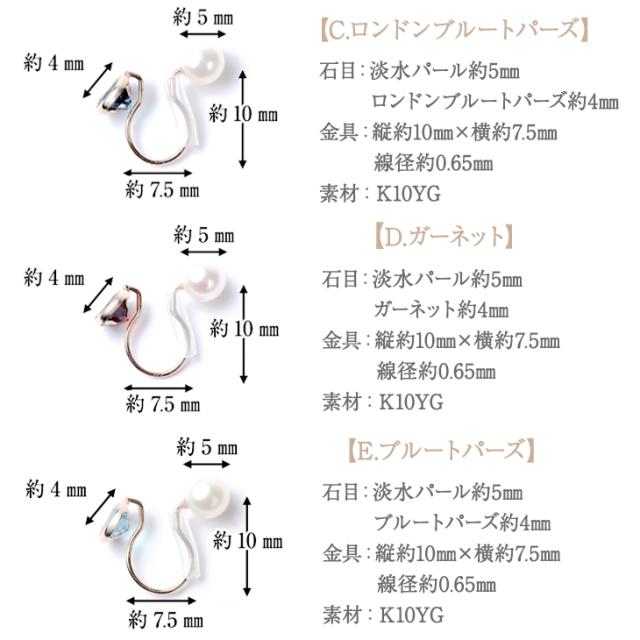 石目サイズ:ロンドンブルートパーズ 約4mm×淡水パール 約5mm