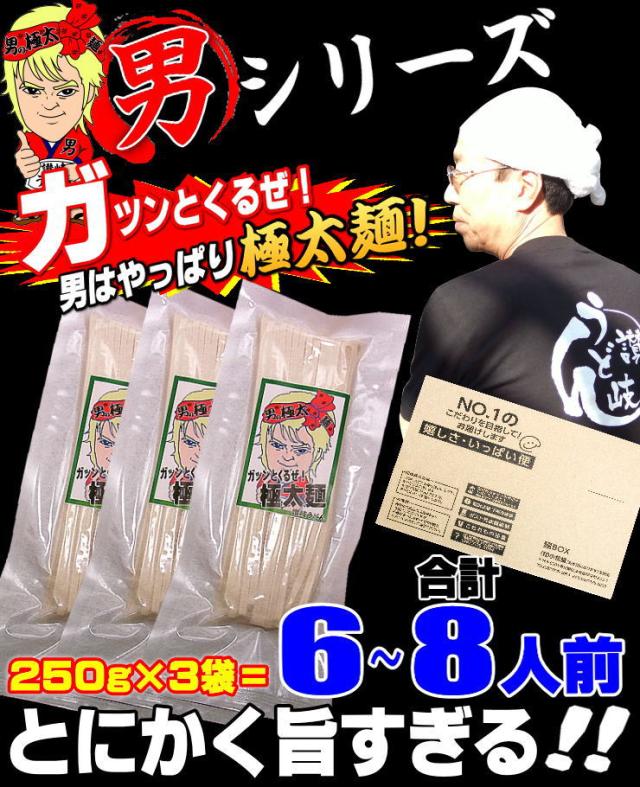 送料無料 讃岐うどん 極太麺 6食 半生麺 完熟 熟成 便利な個包装 250g×3袋 750g お試し 最安値挑戦 お取り寄せ 食品