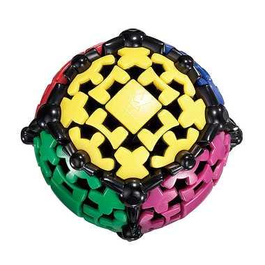 球体の各ピースの色を合わせるパズル。キューブ型のように6色だが組み合ったピースのギア比が異なる為、なかなか思い通りの場所に動かない。