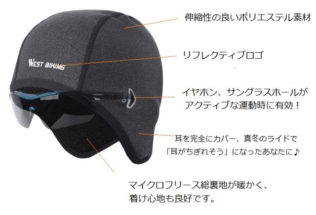 サイクルキャップ WestBiking(ウェストバイキング)防風・防寒インナーフリース スカルキャップ イヤホン/サングラスホール付き フリースキャップ ヘルメットアンダーキャップ 2カラー 自転車 ジョギング スキー スノボ ウィンタースポーツ 687