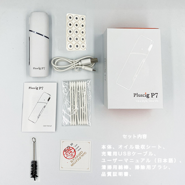 充電用USBケーブル、清掃用綿棒、品質証明書