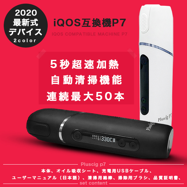 アイコス互換機 ニードル式 加熱式タバコ 連続50本 3,500mAh 電子タバコ 本体 Pluscig P7 新型 アイコス3 IQOS3 マルチ MULTI ホルダー 送料無料
