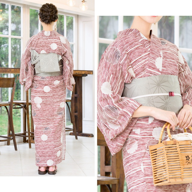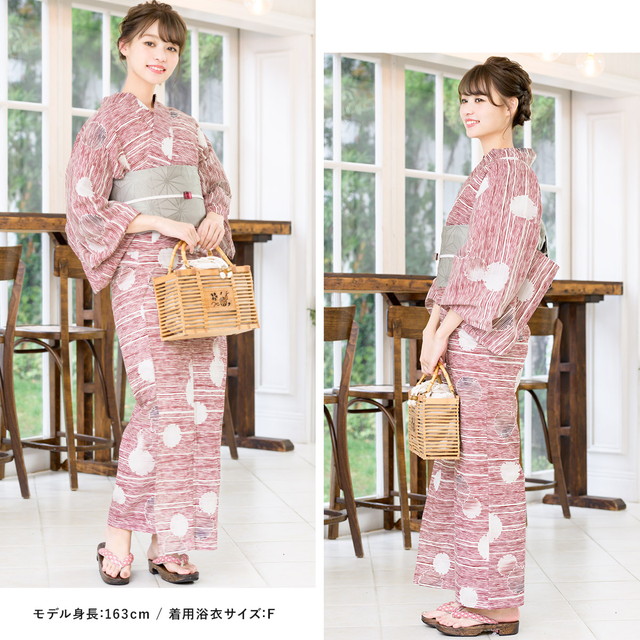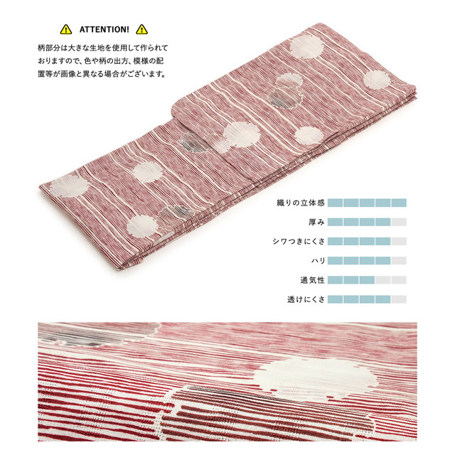 浴衣セット レディース 浴衣セット 作り帯 大人 2点セット(浴衣/帯) 赤 レッド 白 ライトグレー 雪輪 横縞 綿 変わり織り 夏 花火大会 ボヌールセゾン S フリー