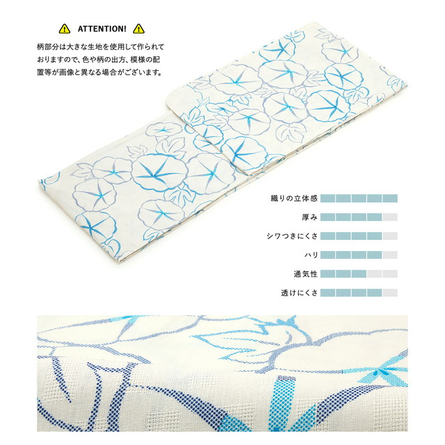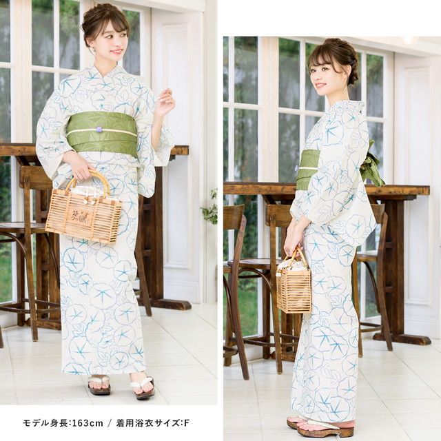浴衣セット レディース 浴衣セット 作り帯 大人 2点セット(浴衣/帯) 白 オフホワイト 青 ブルー 緑 朝顔 花 綿 変わり織り 夏 花火大会 ボヌールセゾン S フリー