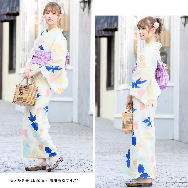浴衣セット レディース 浴衣セット 兵児帯 大人 2点セット(浴衣/帯) 白 アイボリー 青 ブルー 紫 金魚 水面 水玉 ラメ 綿 夏 花火大会 ボヌールセゾン フリー
