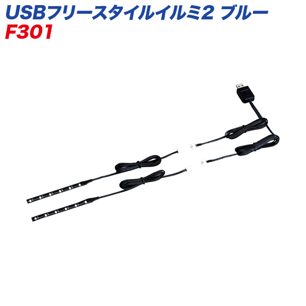 セイワ USBフリースタイルイルミ2 ブルー LED イルミネーション 発光部約10cm 2本入 F301