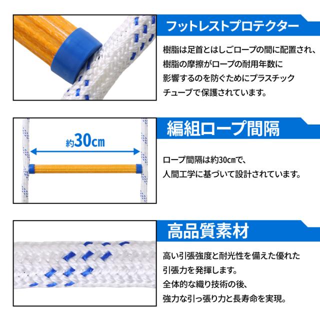 ロープ間隔は30cmで、人間工学に基づいて設計されています。