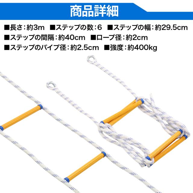 救難ロープ 265cm 防災 救命 非常用 避難 防災用品 災害 火災 救出 ロープはしご 縄はしご 救難ロープ 避難はしご ロープラダー コンパクト