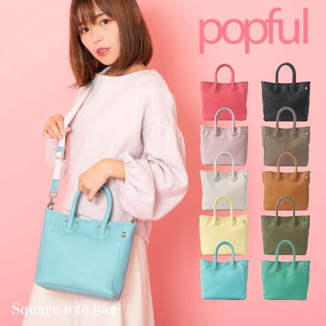 上質なイタリアンレザーを使用したトート、ショルダーにもなるスクエアバッグ。自由な毎日にカラフルなpopfulを。