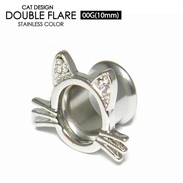 【メール便対応】ボディピアス 00GA(10mm) CATダブルフレア キャットアイレット サージカルステンレス316L 【ボディピアス ロブ ホールトゥピアスに最適 サーキュラ バーベル CBR キャプティブ ビーズリング BCR ボール クロージャー リング】00ゲージ(10ミリ)┃