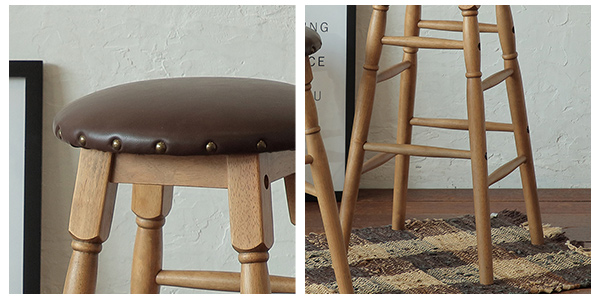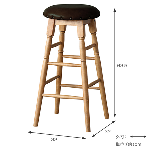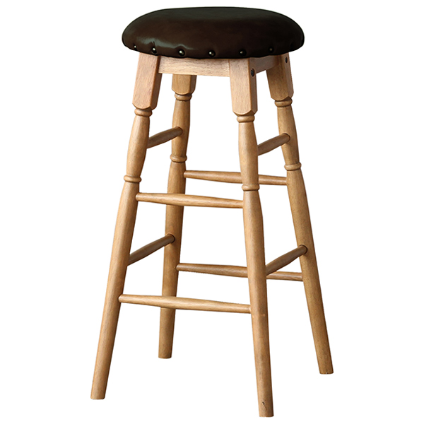 スツール 高さ63.5cm Rasic ハイスツール 木製 天然木 椅子 ( イス いす チェア 丸椅子 チェアー 木製スツール 腰掛け ハイチェア カウンターチェア キッチンチェア レザー調 鋲付き おしゃれ ヴィンテージ オーク )