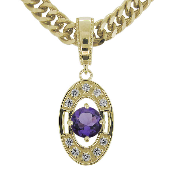 2月誕生石アメジストを使用した18金製の、メンズネックレス(ペンダント)です。