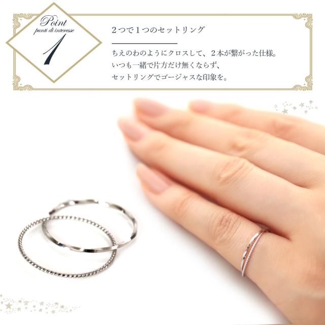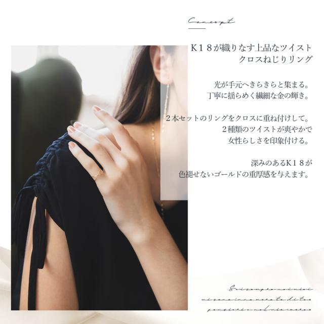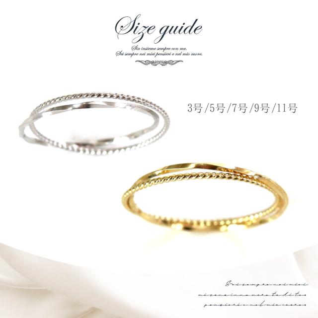 リング イエローゴールド 18k クロスリング 2本セット ピンキーリング ファランジリング 指輪 ゴールド シルバー かわいい おしゃれ 大人可愛い シンプル 可愛い