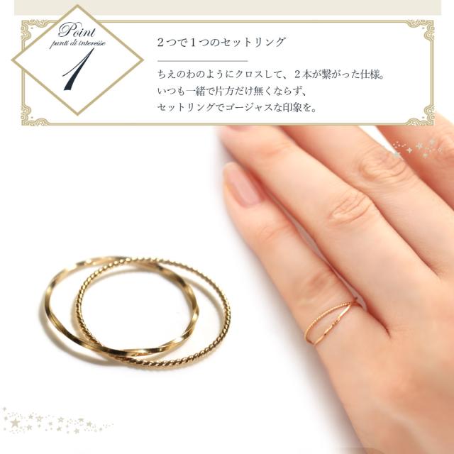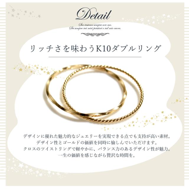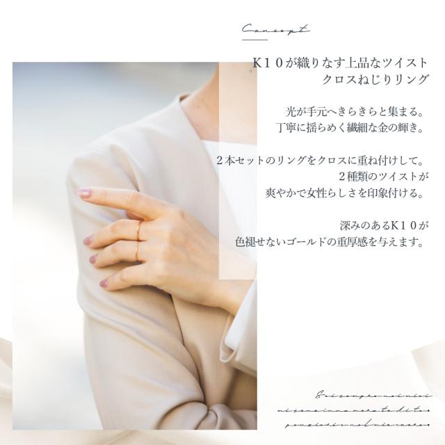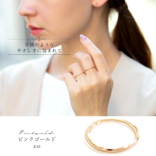 リング イエローゴールド 10k クロス ねじり ピンキーリング ピンクゴールド ファランジリング 指輪 ゴールド かわいい おしゃれ 大人可愛い シンプル 可愛い