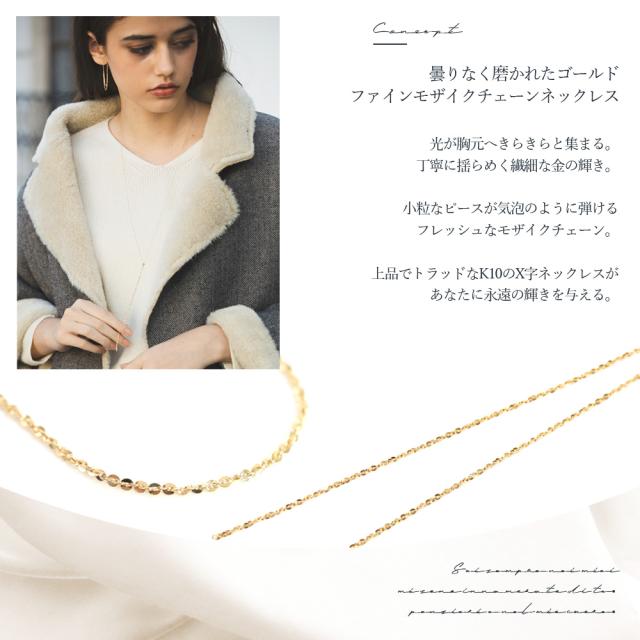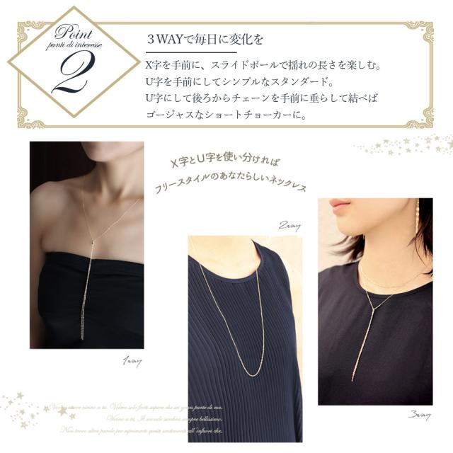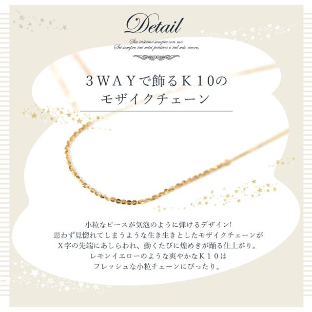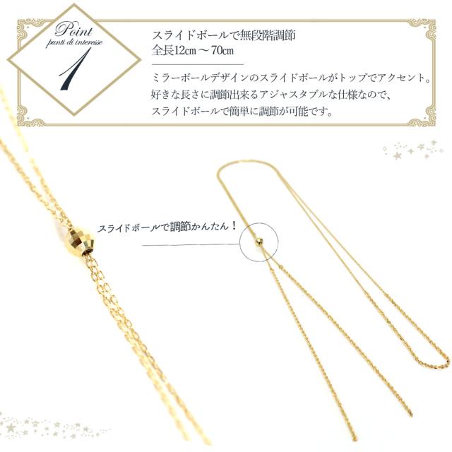 ネックレス 10k レディース チェーン ロング 10金 K10 3way ファイン モザイクネックレス ミラー スライドボール かわいい おしゃれ 大人可愛い シンプル 可愛い