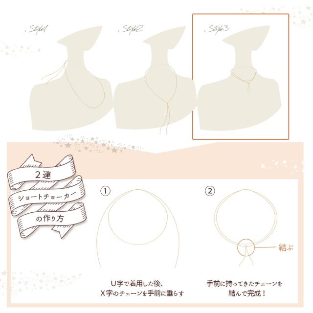 スライドボールを背面にもってきた状態で、フリンジ部分を前面に移動し、2連チョーカーとして