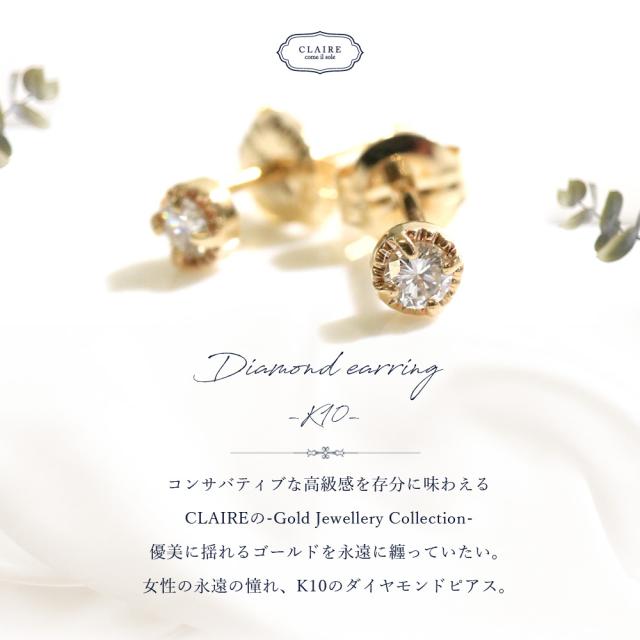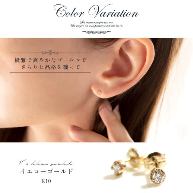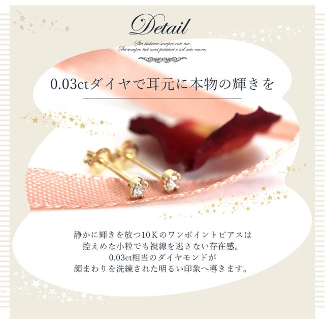 ピアス 10k ダイヤ 一粒 レディース ワンポイント ダイヤモンド ゴールド 10金 天然石 かわいい おしゃれ 大人可愛い シンプル 可愛い