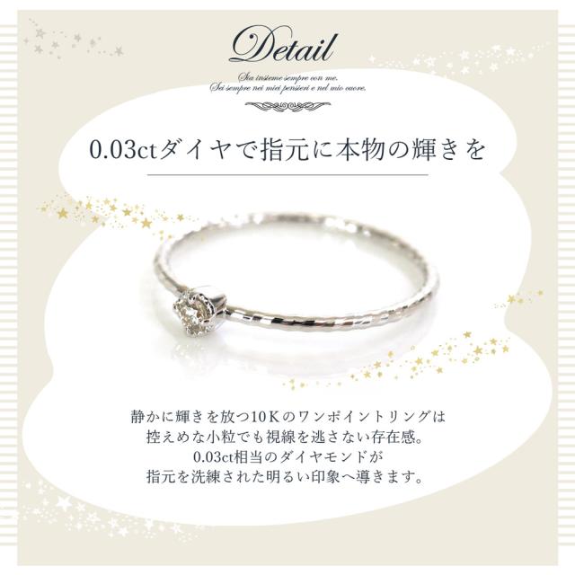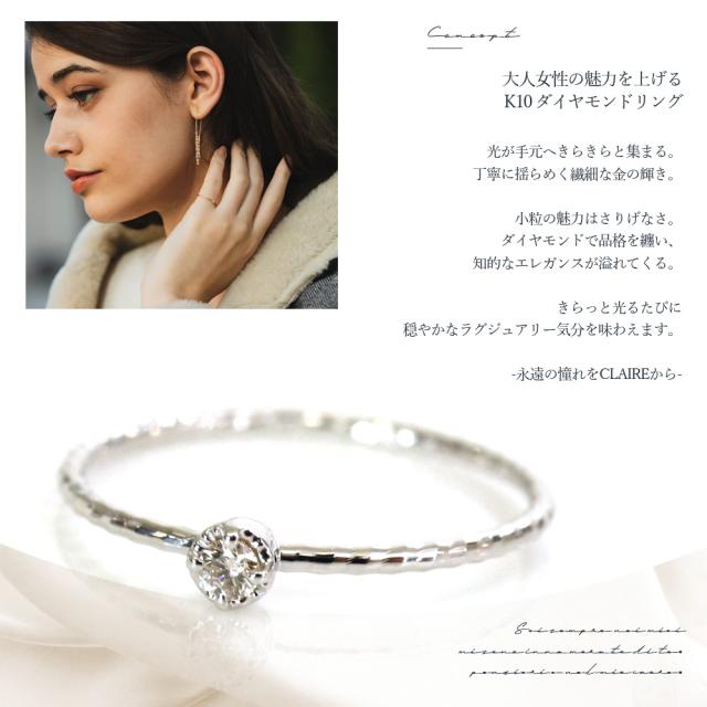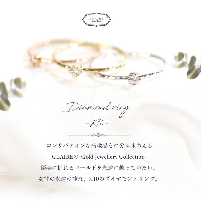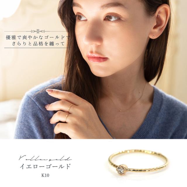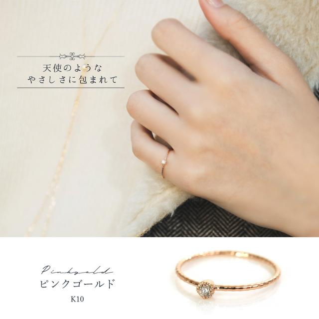 リング 10k ダイヤモンド 一粒 レディース ワンポイント 10金 ピンキーリング ピンクゴールド ファランジリング 指輪 ゴールド シルバー かわいい おしゃれ 大人可愛い シンプル 可愛い
