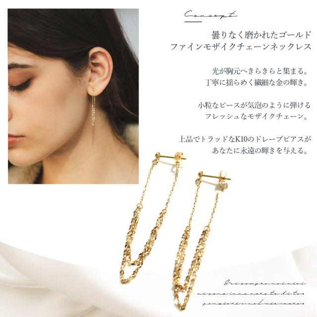 ピアス 10k 揺れる フープピアス レディース ファイン モザイク ドレープ フープ ゴールド 10金 かわいい おしゃれ 大人可愛い シンプル 可愛い