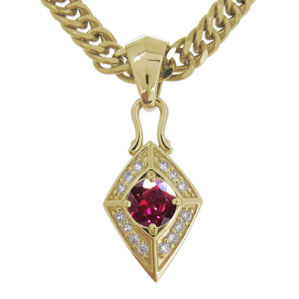 7月誕生石ルビーを使用した10金製の、シンプルデザインメンズネックレス(ペンダント)です。