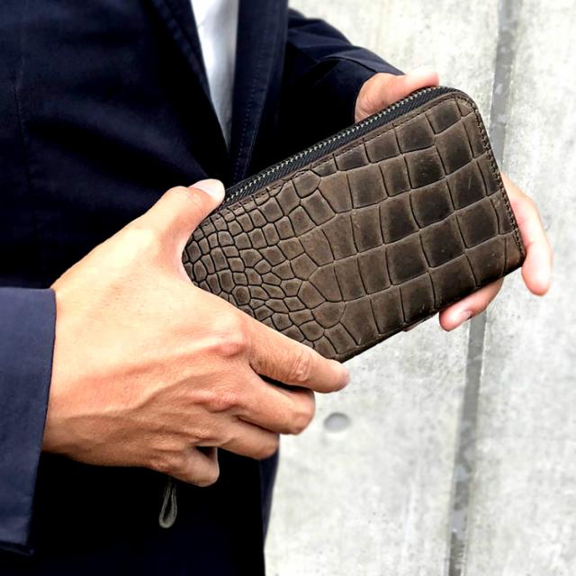 コルテロ 長財布 多収納 レザー 本革 ラウンドファスナー クロコダイル型押し ブランド Cortello イタリアンレザー×姫路レザー 日本製