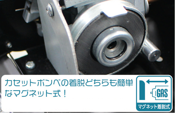 ボンベの着脱は簡単便利なマグネット式です。