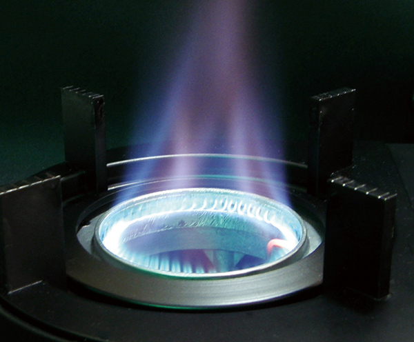 内炎式バーナーの渦巻く炎により高火力、高効率