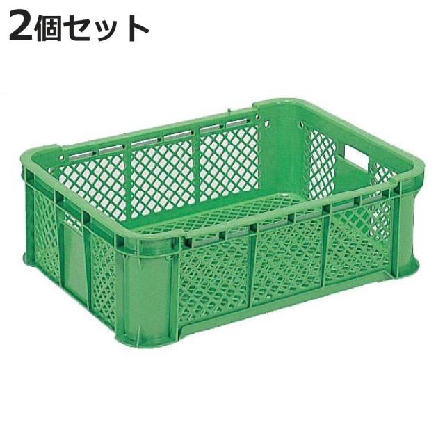 コンテナー スタッキングコンテナー 2個セット サンテナー 内容量44.9L ( コンテナ 農業 収穫 農産物 収納 野菜 みかん 果物 メッシュ 畑 家庭菜園 業務用 スタッキング 運搬 輸送 安定 段積み 2 クロス積載 )