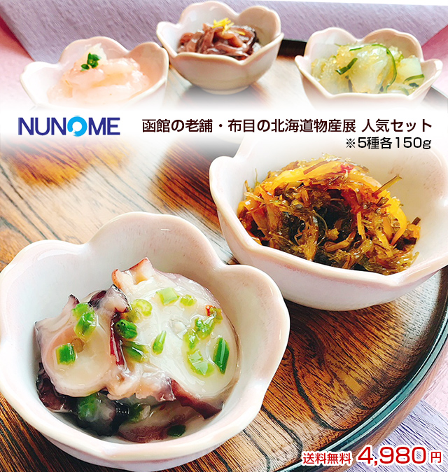 北海道 珍味 おつまみ セット 布目の北海道物産展人気セット 5種各150g たこ足わさび/松前漬/子いかのトビらんらん/甘えび塩辛/いか塩辛 ギフト/プレゼント/