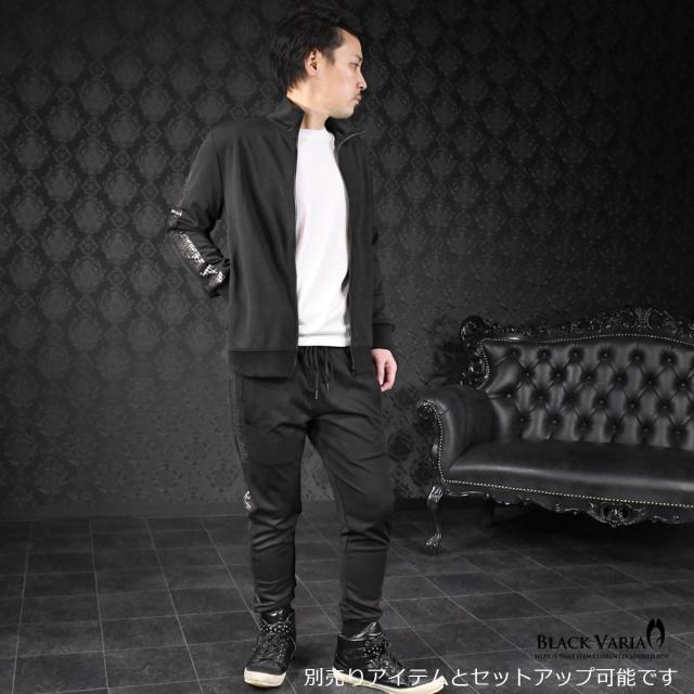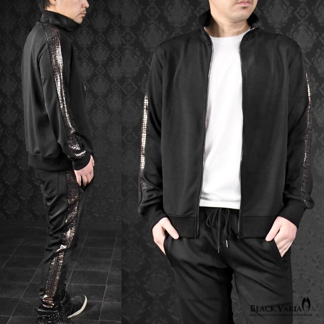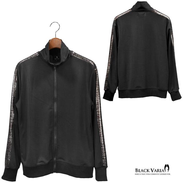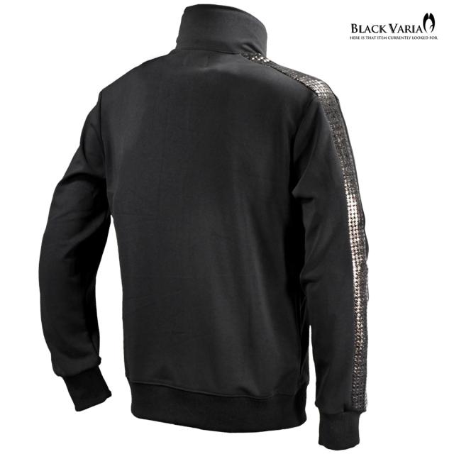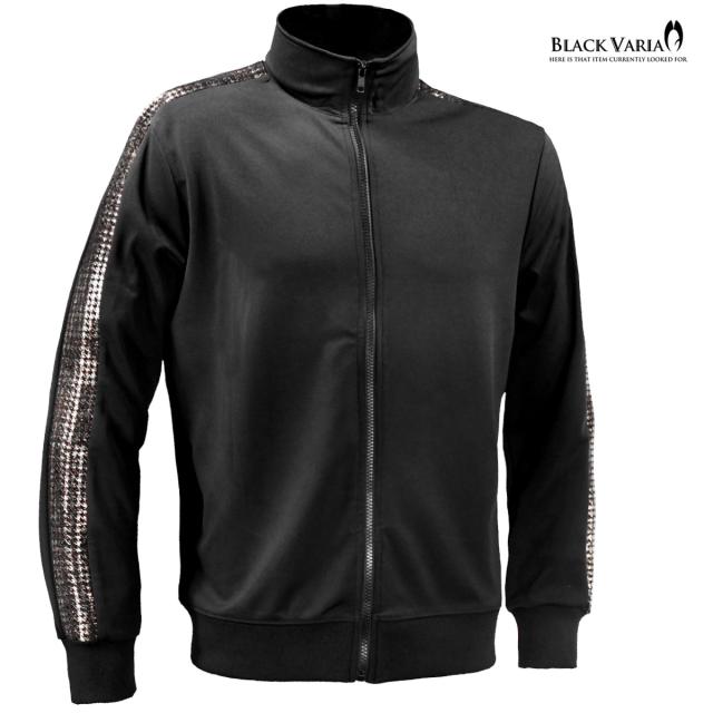 トラックジャケット ゴールドライン サイドライン 千鳥格子 ムラ柄 箔プリント メンズ ストレッチ フルジップアップ(ブラック黒) 94346