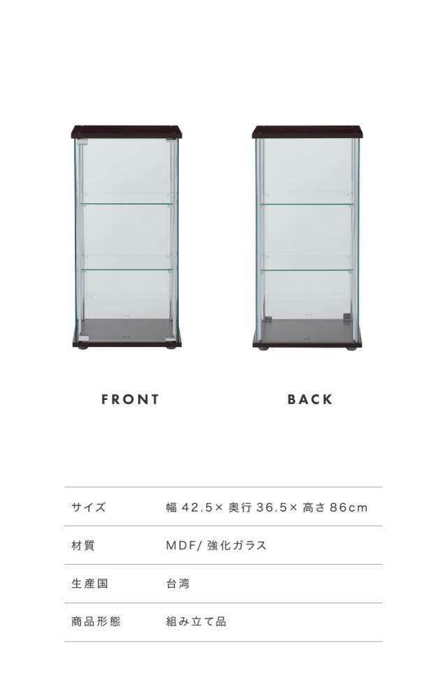 ガラスコレクションケース フィギュアケース 3段 4面ガラス 幅42.5cm 奥行36.5cm 高さ86cm ブラウン 強化ガラス マグネット式(代引不可)
