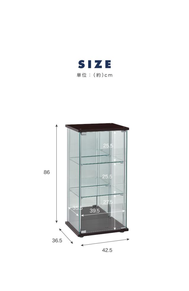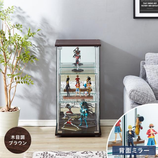 ガラスコレクションケース フィギュアケース 3段 背面ミラー 付き 幅42.5cm 奥行36.5cm 高さ86cm ブラウン 強化ガラス(代引不可)【送料無