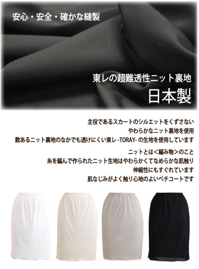 シンプルなタイトペチコート 35丈/40丈/45丈/50丈/55丈 べたつかないさらさら快適なペチコート【静電気防止 フォーマル ブライダルインナー タイトスカート マーメイドスカート】