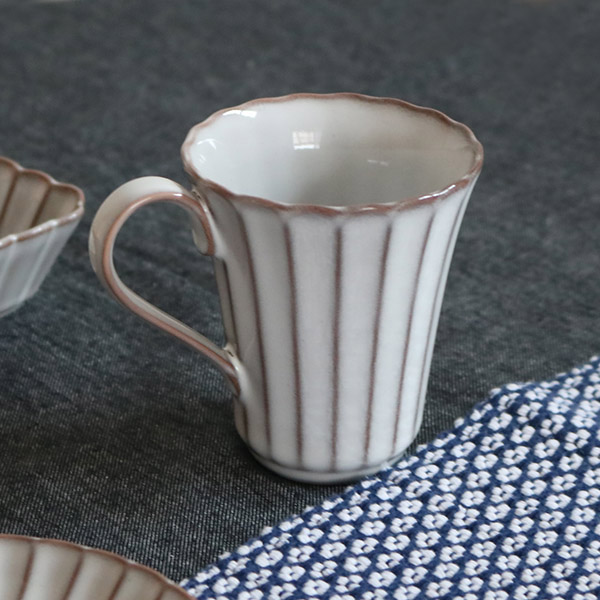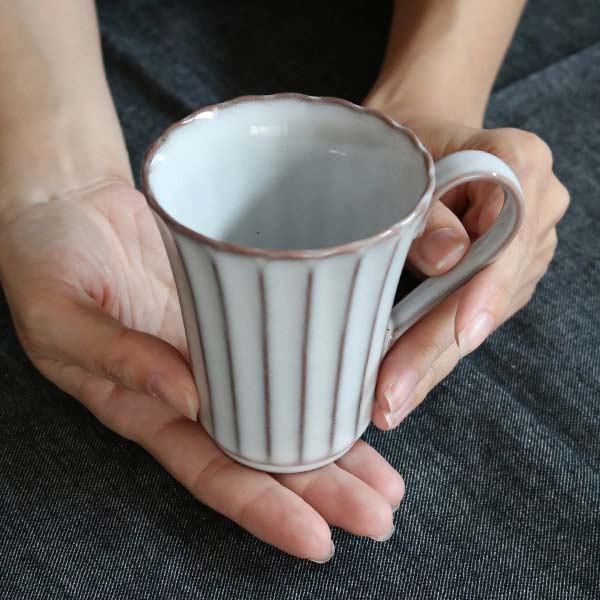マグカップ 235ml 風雅 月白 和食器 磁器 日本製 ( カップ マグ 食洗機対応 電子レンジ対応 オーブン対応 耐熱 白い食器 輪花 しのぎ コーヒー 紅茶 和モダン )