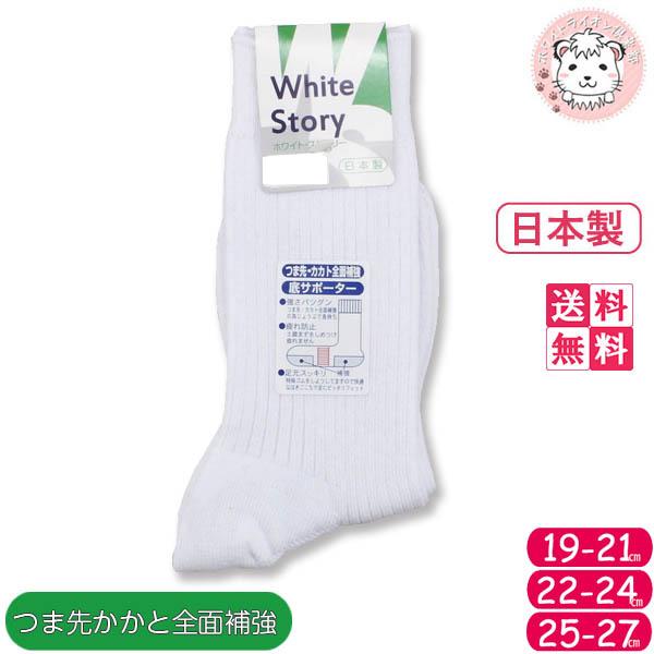 スクールソックス 10足セット ホワイトストーリー クルー丈ソックス リブ編み 靴下 日本製 22-24cm/25-27cm
