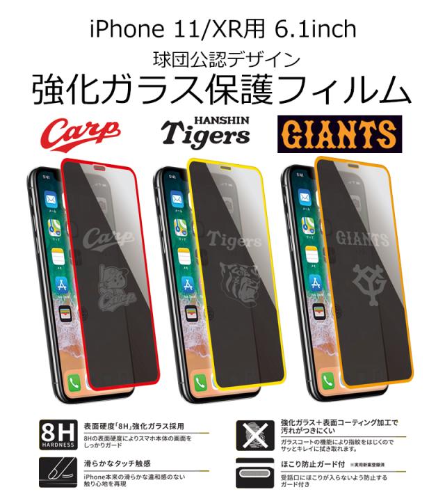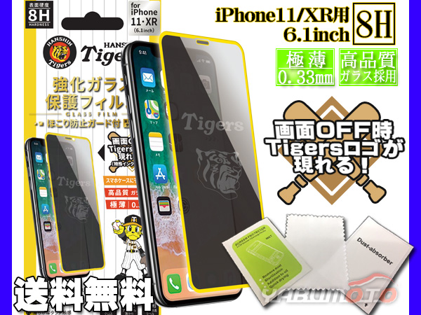 タイガース公認デザイン 強化ガラス 保護フィルム iPhone11 XR 6.1インチ 8H 極薄 高品質 ほこり防止ガード付 メール便 送料無料