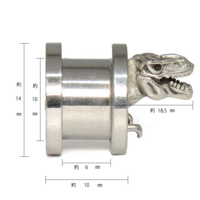 【メール便対応】ボディピアス 00GA(10mm) dinoフレッシュトンネル dinosaurアイレット サージカルステンレス316L【恐竜 ダイナソー デザイン インパクト 個性的 ハード ロック ボディーピアス ロブ イヤーロブ ホールトゥピアス】00ゲージ(10ミリ)┃
