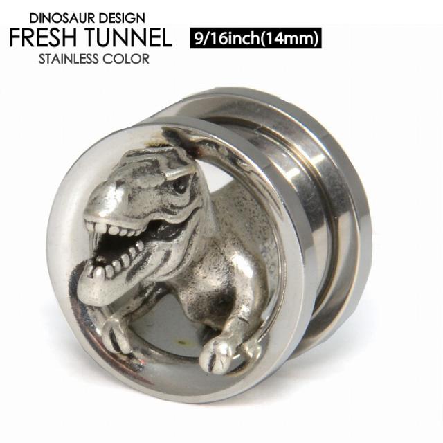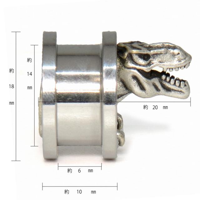 【メール便対応】ボディピアス 14mm9/16inch) dinoフレッシュトンネル dinosaurアイレット サージカルステンレス316L【恐竜 ダイナソー デザイン インパクト 個性的 ハード ロック ボディーピアス ロブ イヤーロブ ホールトゥピアス】14ミリ(9/16インチ)┃