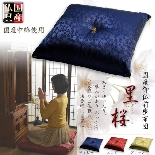 国産仏具【国産中綿使用:御仏前座布団:里桜(さとざくら)・ネイビー】仏壇用仏具 ざぶとん 仏事 法要 命日 送料無料