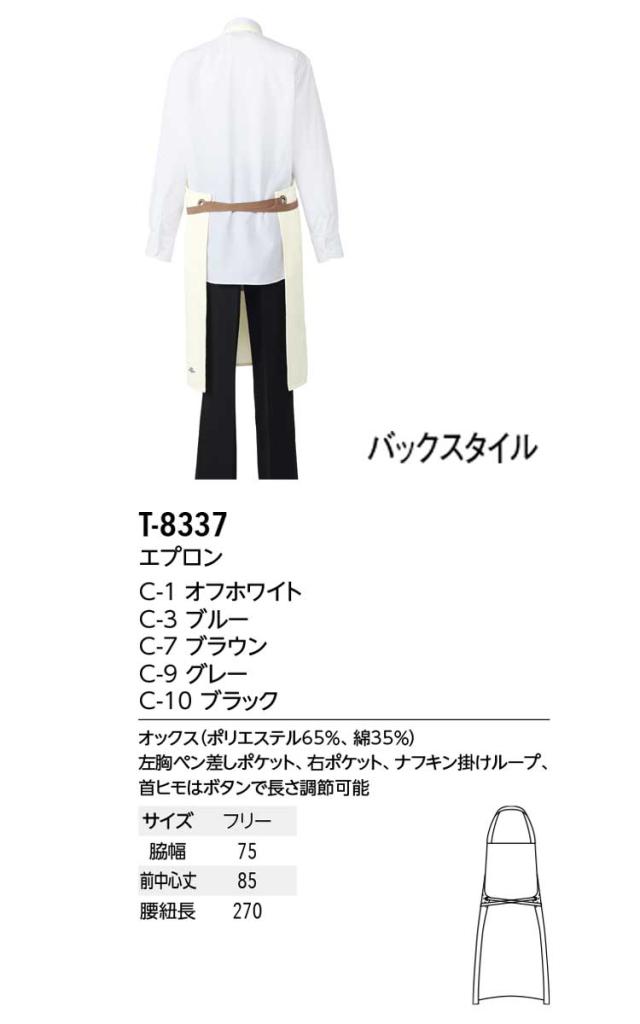 飲食サービス系ユニフォーム アルベ arbe チトセ chitose 兼用 エプロン T-8337 通年