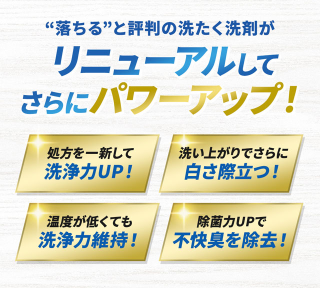 "落ちる"と評判の洗たく洗剤がリニューアルしてさらにパワーアップ!