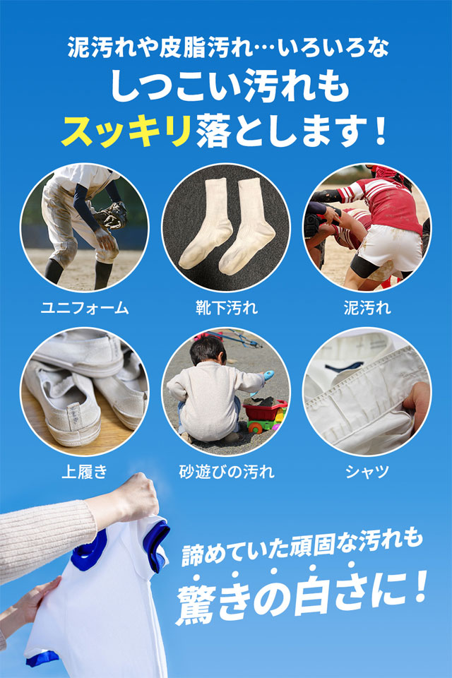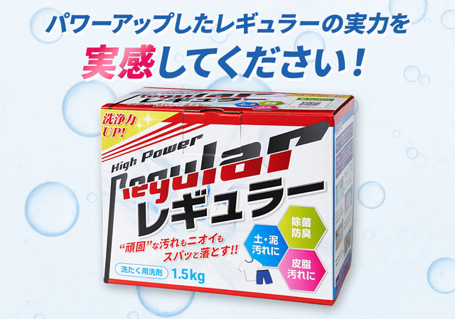 特徴:元プロ野球選手が開発した泥や土汚れに強い洗剤「レギュラー」がリニューアルしてさらにパワーアップ!