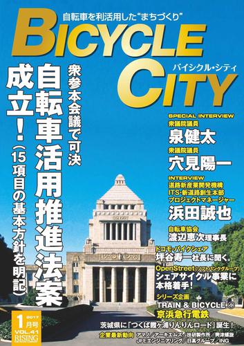 ●緊急レポート自転車活用推進法案 成立!自転車走行道路、シェアサイクル施設の整備、自転車の安全対策、自転車と公共交通機関の連携など15項目の基本方針を明記・自転車活用推進法全文・INTERVIEW衆議院議員(民進党)泉健太氏に聞く。「法律成立は重要な第一歩。やるべきことが山積しています」・INTERVIEW衆議院議員(自由民主党)穴見陽一氏に聞く。「法律が成立したので、今後は基本計画の策定が重要なカギになります」●インタビュードコモ・バイクシェア坪谷寿一代表取締役社長「シェアサイクルを公共交通、恒久的な交通手段に——。」●インタビュー注目の「HELLO CYCLING」ソフトバンクグループのOpenStreetシェアサイクル事業に本格着手!●連載インタビュー(3)浜田誠也 一般財団法人道路新産業開発機構ITS・新道路創生本部プロジェクトマネージャー「まちづくりは地域住民みずからの主体性が最も重要です」●新シリーズ企画TRAIN & BICYCLEその1京浜急行電鉄三浦半島と自転車をつなぐ自転車メリダ・ミヤタカップに合わせ、「京急サイクルトレイン メリダ・ミヤタカップ号」を運行●インタビュー渡辺恵次自転車協会理事長に聞く「時代に適合した事業推進を!」●企業最新動向進化するパーキングビジネスアマノ/アーキエムズ/技研製作所/興津螺旋/JFEエンジニアリング/ING●シリーズ企画地方創生と自転車を利活用したまちづくり -9-茨城県つくば市●企業の自転車安全利用徹底へ!警視庁指定「自転車安全利用モデル企業」●BICYCLE CITY EXPO 2017 開催決定