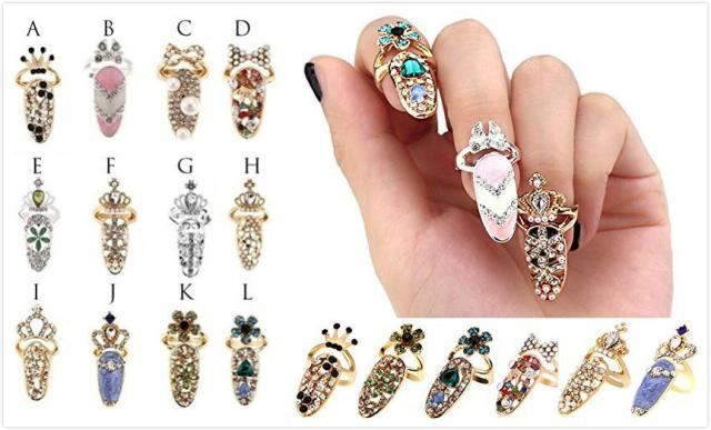 お洒落 キラキラ ネイル リング ★ レディース ジュエリー 指輪 爪 ネイルチップ ラインストーン 関節リング アクセサリー レディ K11-2