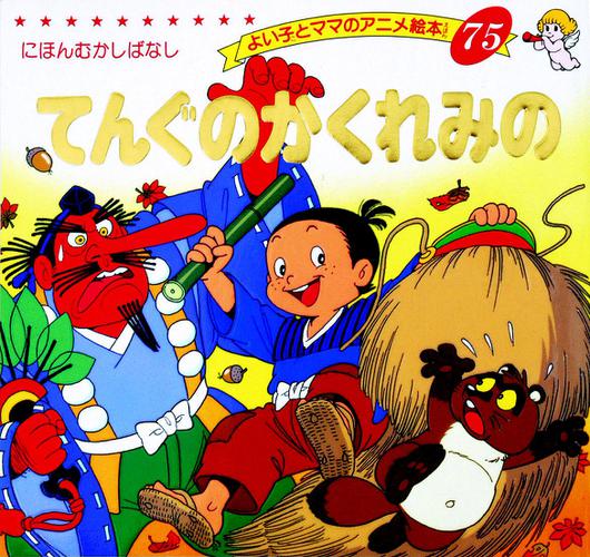 日本全国で伝わる笑話のひとつ。てんぐと交換する宝物も、鼻がのびる団扇だったり、七化けの頭巾だったりと、少しずつ変化して、各地で語りつがれています。