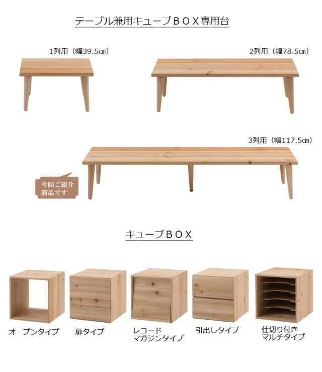 MATERIAL マテリアル 杉材キューブボックス専用 台座兼用テーブル 幅117cm (オプションパーツ) (ボックス 箱 組合せ 小物入れ 木箱 フリー ラック 天然木 木製 無垢材 カントリー ナチュラル 北欧 ヴィンテージ 日本製 国産 おすすめ おしゃれ)