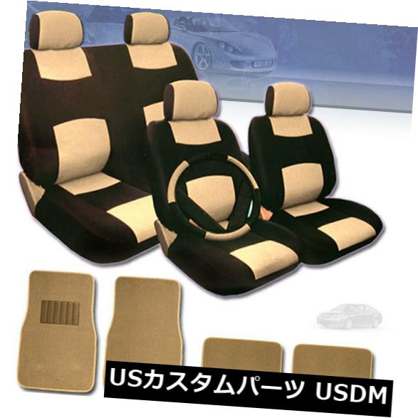 SUBARU PREMIUMブラックTANレザーレットカーシートステアリングカバーフロアマットセット FOR SUBARU PREMIUM BLACK TAN LEATHERETTE CAR SEAT STEERING COVERS FLOOR MATS SET