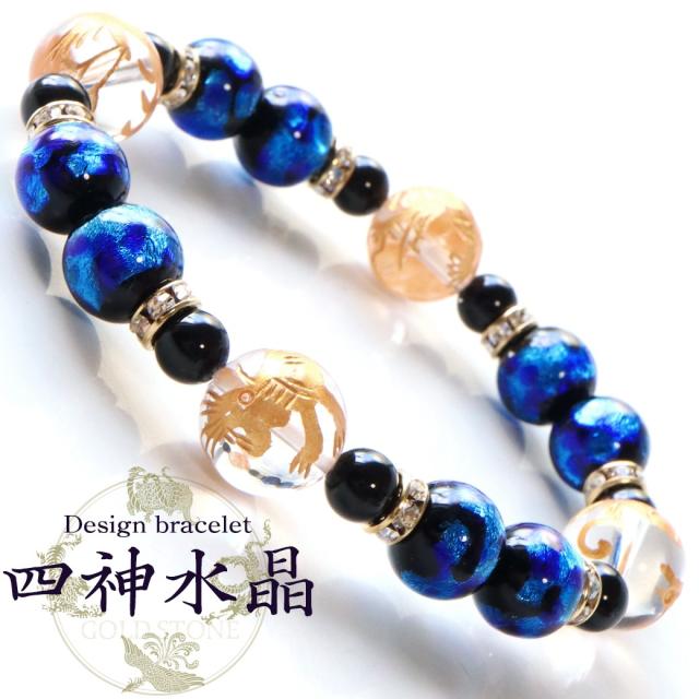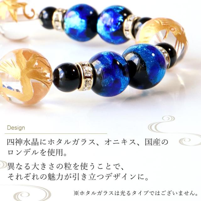 四神 ホタルガラス ブレスレット オニキス 水晶 天然石 パワーストーン メンズ アクセサリー