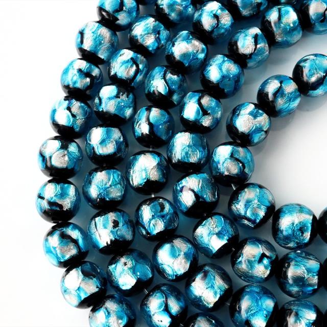 ホタルガラス 一連 ビーズ 12mm 34粒 ライトブルー 水色 とんぼ玉 沖縄 琉球 大人気 お土産